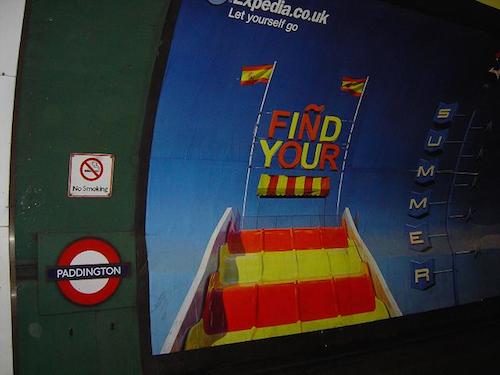 Hasta en las paradas de metro reconocen la invasión roji-gualda. Para muestra un botón: