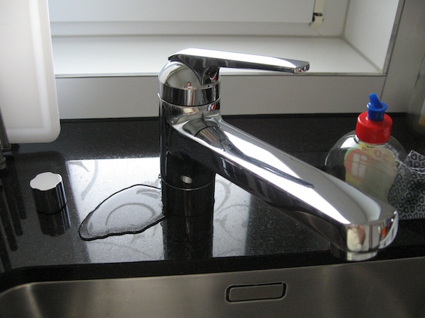 Nuestro edificio ha sido recientemente reformado. Las reformas mayores se hicieron en la cocina y en el baño. Los suizos no son perfectos, pero casi, por eso nos sorprende que el grifo de nuestra cocina nueva haya sido colocado de tal manera que gotea por un lateral.