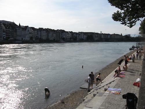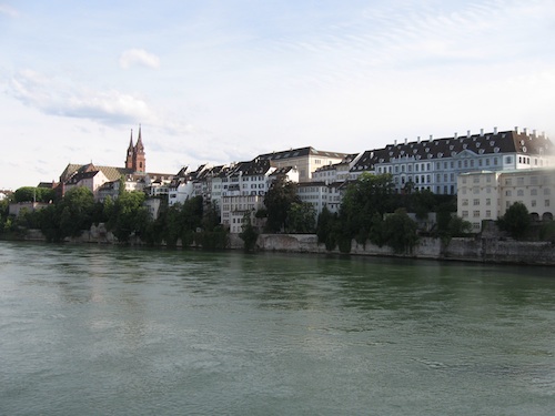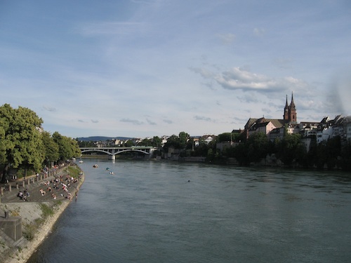 Basilea, como se la conoce en italiano (y creo que en español también) es una ciudad que limita con Alemania y con Francia. Su río no es otro que el famoso Rin.