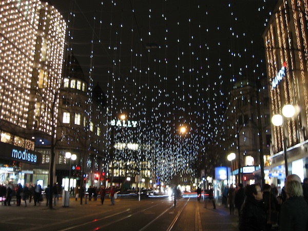 Pues ayer encendieron las luces de Navidad en Bahnhofstrasse. Es curioso, aquí le ponen nombre propio a la iluminación de Navidad… Lucy ;) Se inauguró el año pasado; por lo visto las anteriores eran horribles, en plan tubos de neón futuristas… :D