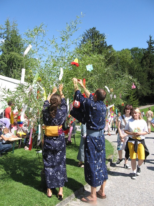 Los árboles de bambú estaban decorados y había quien colgaba de ellos sus deseos. La presencia de la comunidad japonesa que vive en Zürich era bastante y algunos, muchos vestían con el kimono.