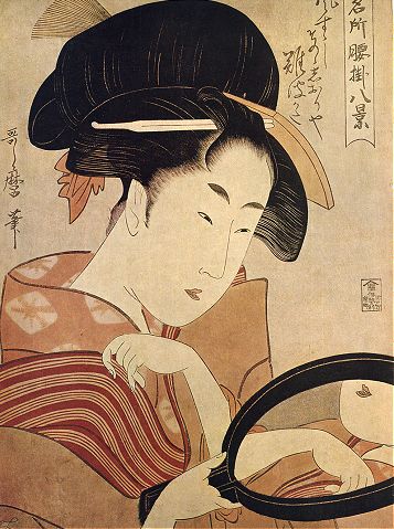 La exposición constaba de una serie bastante numerosa de fotografías realizadas en el siglo XIX en blanco y negro y luego coloreadas a mano, que mostraban a mujeres japonesas en su vida cotidiana. Desde Geishas en sus horas de descanso, a mujeres normales comprando telas para hacer kimonos, se iban desgranando una a una las fotografías que nos transportaban a otros tiempos y otra cultura singularmente bella. En otra parte de la sala se mostraban trabajos realizados en madera cuyo tema principal eran también la mujer japones. Había muchas obras de Utamaro, por poner un ejemplo.