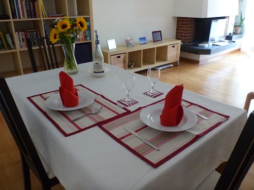 Bien merece una celebración: Almuerzo casero para dos, con mesa vestida de gala :)