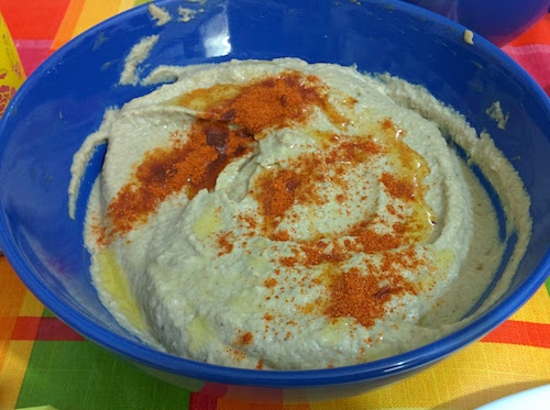 Añadir el chorreoncito de aceite y colocar en un cuenco en el que se servirá, acompañado de pan de pita. Se come frío.