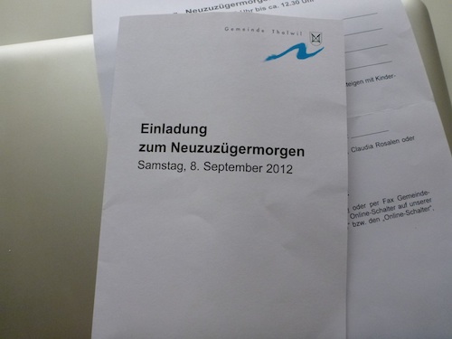 Resulta que como tradición del Gemeinde de Thalwil, a todos aquellos que se hayan mudado entre Julio del año anterior y Junio de éste (recordad que nuestra mudanza fue en Marzo), les invitan a pasar una mañana de sábado dando una vuelta al pueblo a la ciudad en visita guiada.