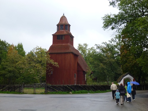 El Parque-Museo Skansen, que es un Museo al aire libre con casas y edicificios tradicionales originales de hace 100 ó 200 años, traídos pieza a pieza y vueltos a montar en el parque desde distintos puntos del país. Por cierto que vismo a algunos «habitantes» de este museo ataviados con los trajes de la época. Lástima que en el interior de las casas y tiendas (visitables también) no se pudieran echar fotos… :(