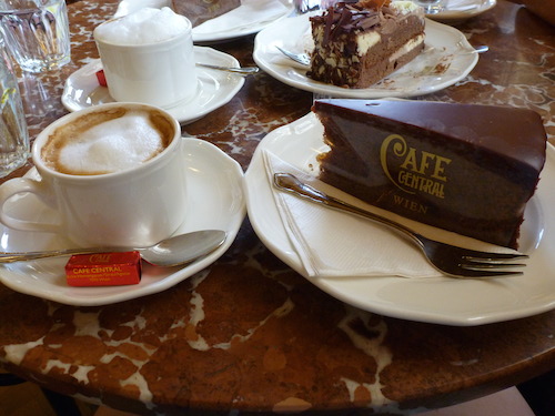 El sitio elegido fue el Café Central. No quisimos ir al famoso hotel que da nombre a la tarta, porque nos habían dicho que era un poquito snob y que seguramente estaría, a pesar de ello, hasta la bandera.