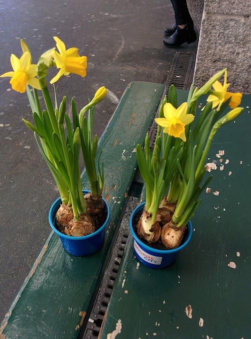Este fin de semana también nos acercamos al centro en Zürich y en Migros nos regalaron una macetita de narcisos a cada uno. Motivo… ¡ya es primavera! :D