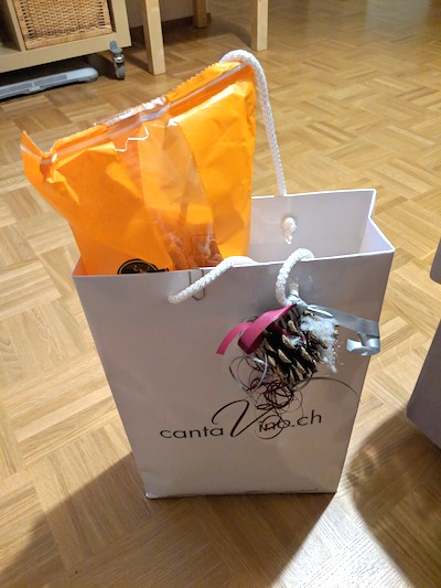 Lo siguiente que pensé es que mi amiga Enri o mi antigua vecina Pía (del piso anterior) al ir o venir del supermercado me había dejado algo en la puerta. Claro, eso tendría lógica si el paquete en cuestión sólo hubiera estado en mi puerta… pero luego me dí cuenta que los demás vecinos de mi corredor tenían un paquetito igual… jajaja.
