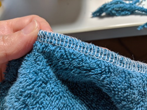 En realidad, no es tan difícil como parece; eso sí, hasta que no se empecé a remallar (una tela de toalla vieja que tenía por ahí rulando) no tenía ni idea de si había tenido éxito en mi contienda contra La Bestia o si, por el contrario, ganaría ella atorándose los hilos o rompiendo alguna de las dos agujas que lleva.